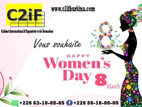 Le Cabinet International d’Ingenierie et de Formation (C2IF) vous souhaite bonne fête de la journée internationale de la femme! https://wa.me/+22663106565 https://wa.me/+2250797282511